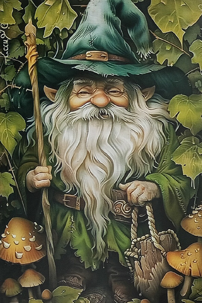 Carte postale avec une illustration d'un personnage du Petit Peuple.