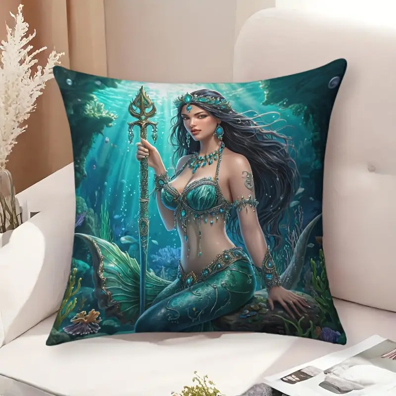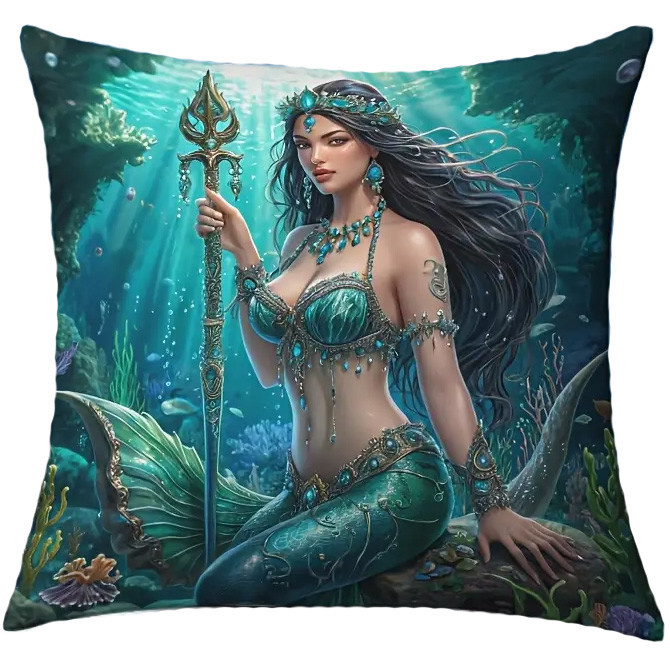 Coussin avec une housse amovible sérigraphiée sur une seule face avec une illustration représentant la reine des Océans.