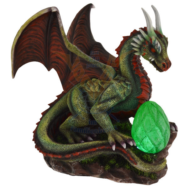 Luxueuse figurine de Dragon protégeant un œuf éclairé par une ampoule LED.