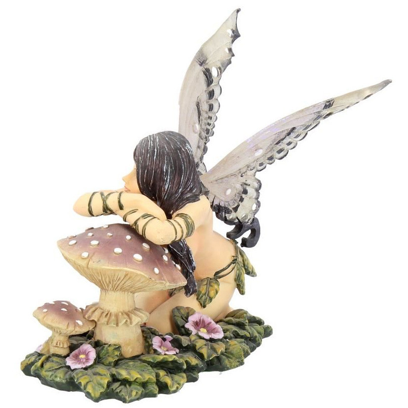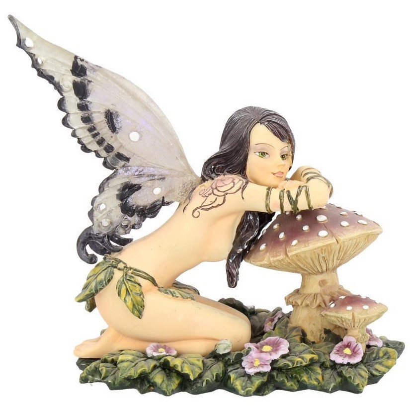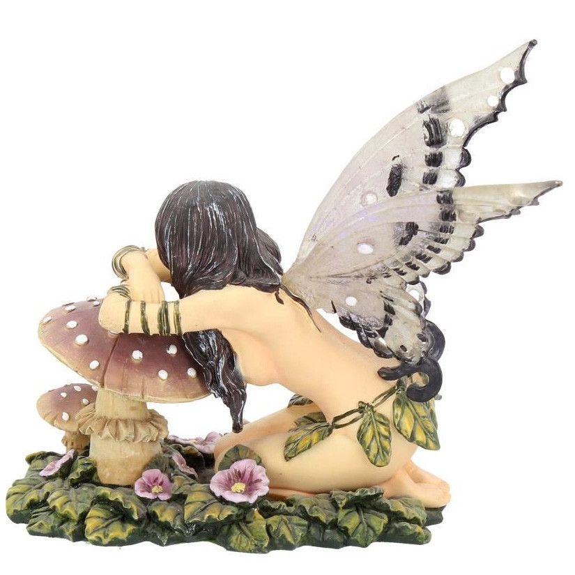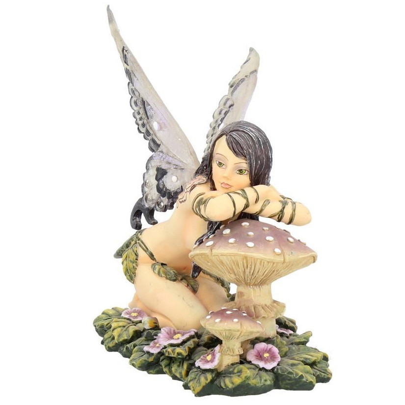 Figurine de Fée agenouillée et accoudée sur un champignon.
