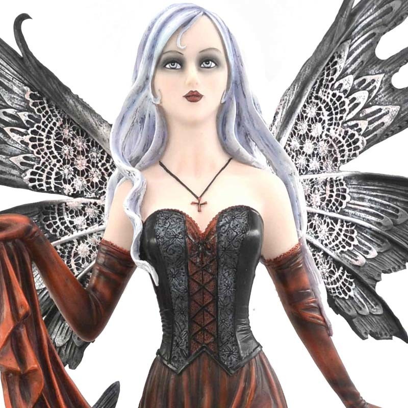 Figurine de Fée Géante, gardienne du feu, entourée de flammes et accompagnée d'un petit Dragon.