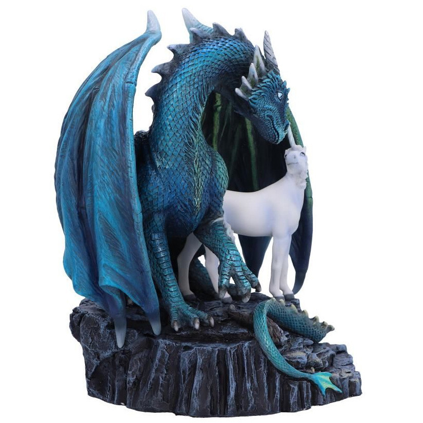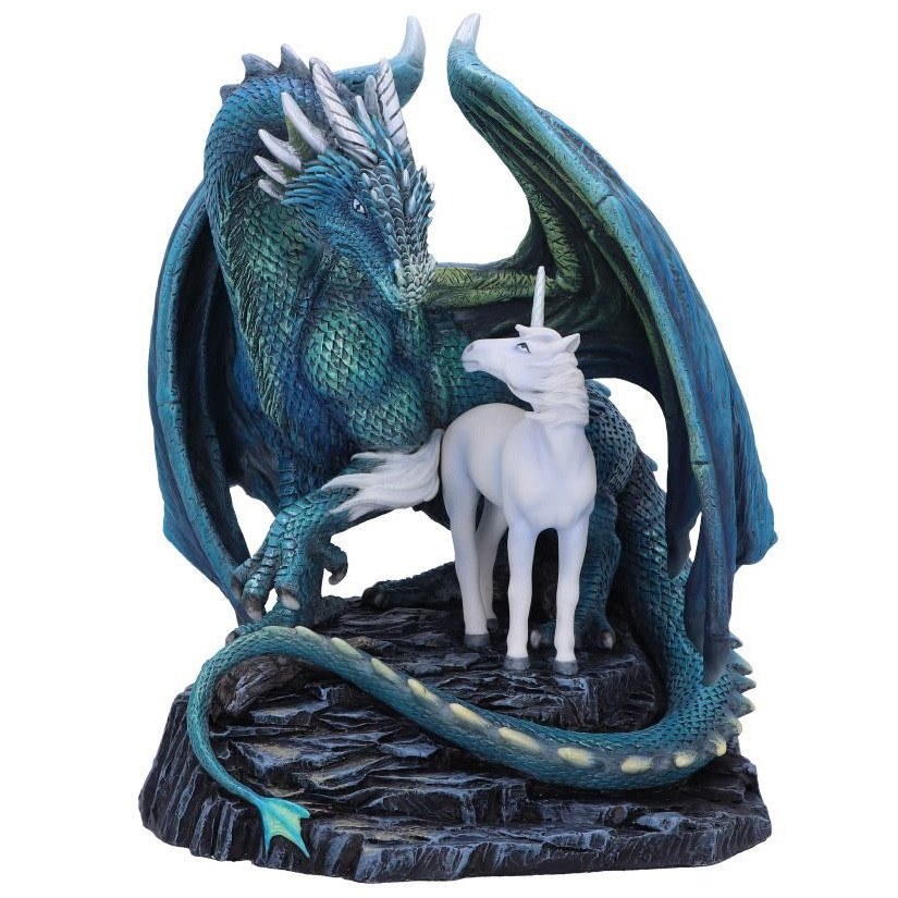 Luxueuse et massive figurine représentant un Dragon protégeant une Licorne.