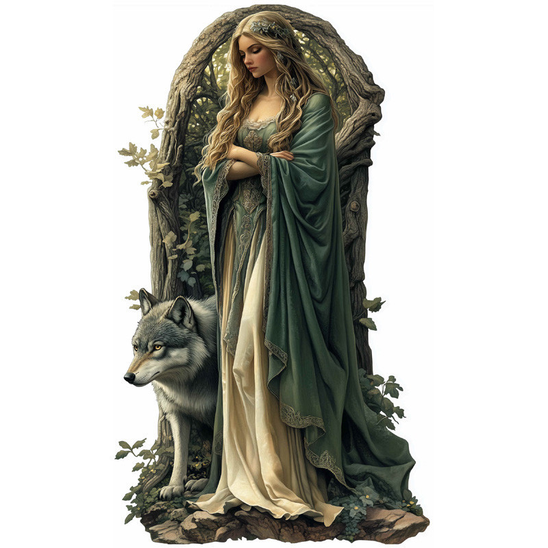 Grande plaque en métal représentant une magnifique Elfe avec un Loup.