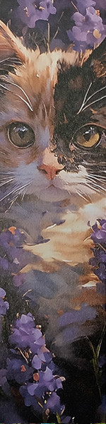 Marque page cartonné avec une illustration de Chat avec des fleurs.