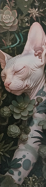 Marque page cartonné avec une illustration de Chat avec des fleurs.