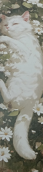 Marque page cartonné avec une illustration de Chat avec des fleurs.