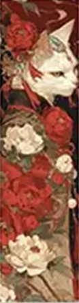 Marque page cartonné avec une illustration de Chat avec des fleurs.
