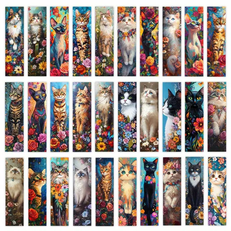 Marque page cartonné avec une illustration de Chat avec des fleurs.