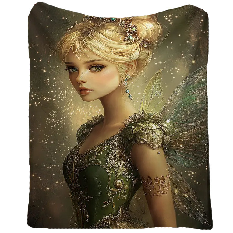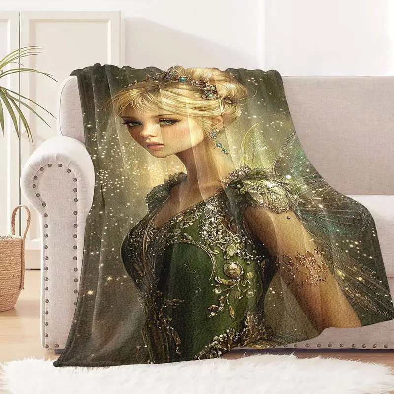 Plaid en flanelle souple 200-250g/㎡ avec une illustration sur le devant représentant une princesse Fée.