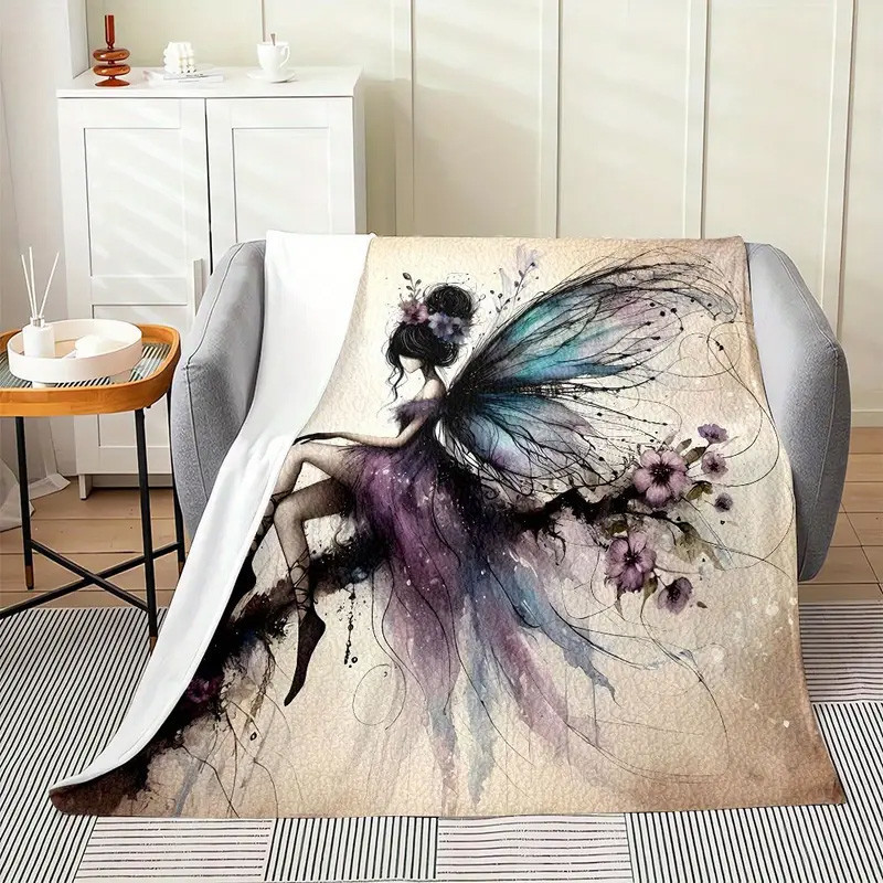 Plaid en flanelle souple 200-250g/㎡ avec une illustration sur le devant représentant une Fée stylisée.