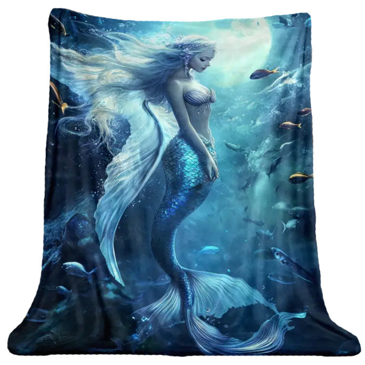 Plaid en flanelle souple 200-250g/㎡ avec une illustration sur le devant représentant une magnifique Sirène.