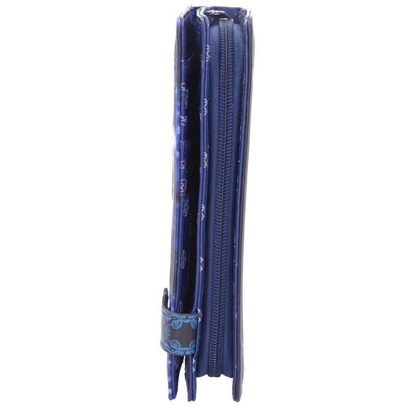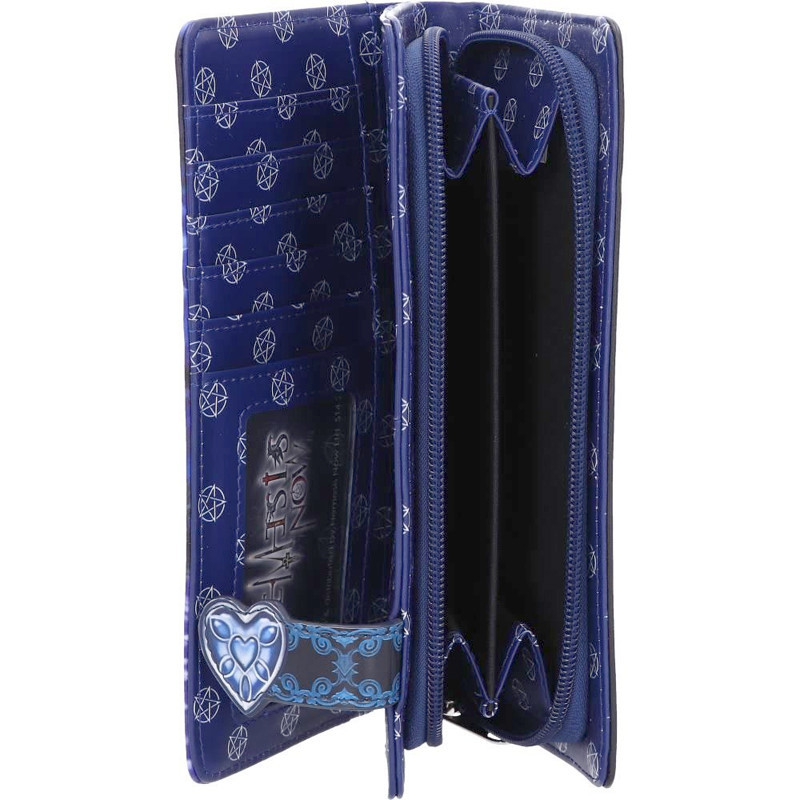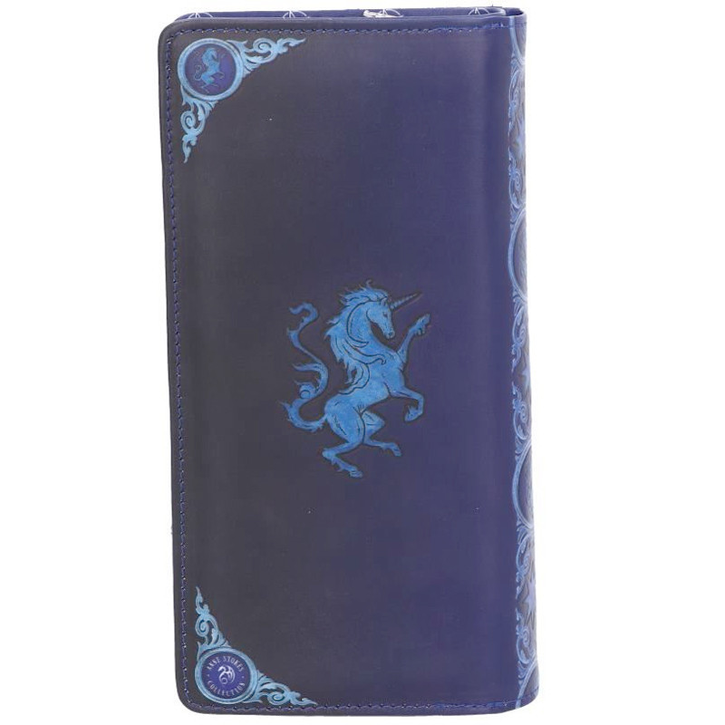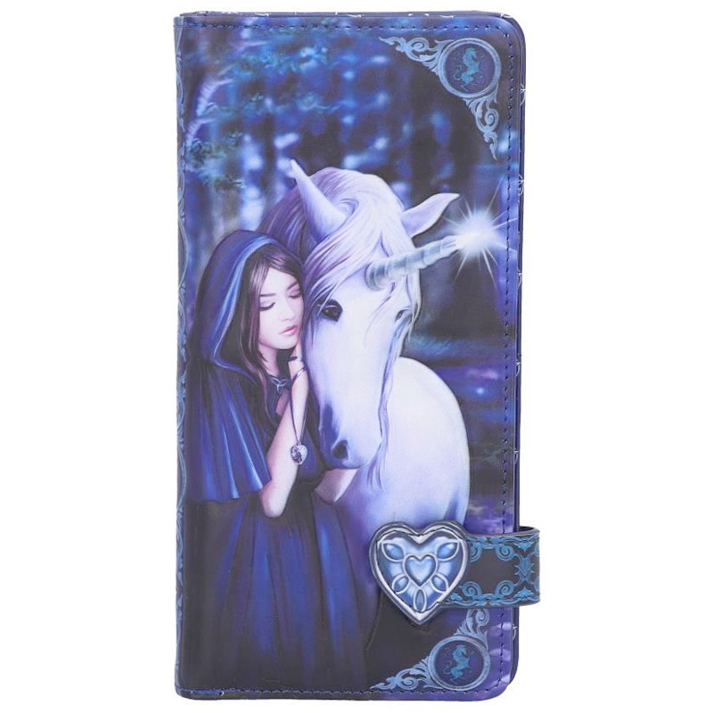 Portefeuille orné d'une illustration en relief représentant un tendre moment de complicité entre une Elfe et une Licorne.