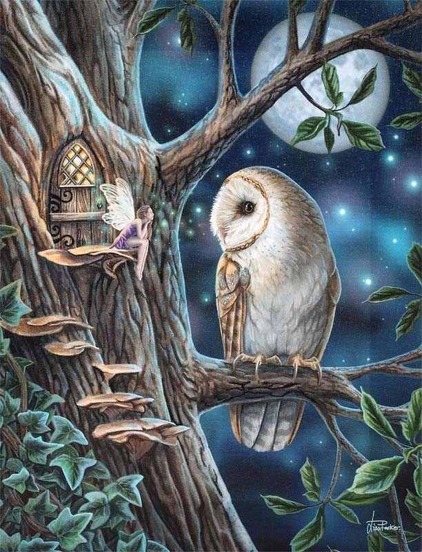 Reproduction sur toile d'une illustration de l'artiste Lisa Parker représentant de Fée avec une chouette.